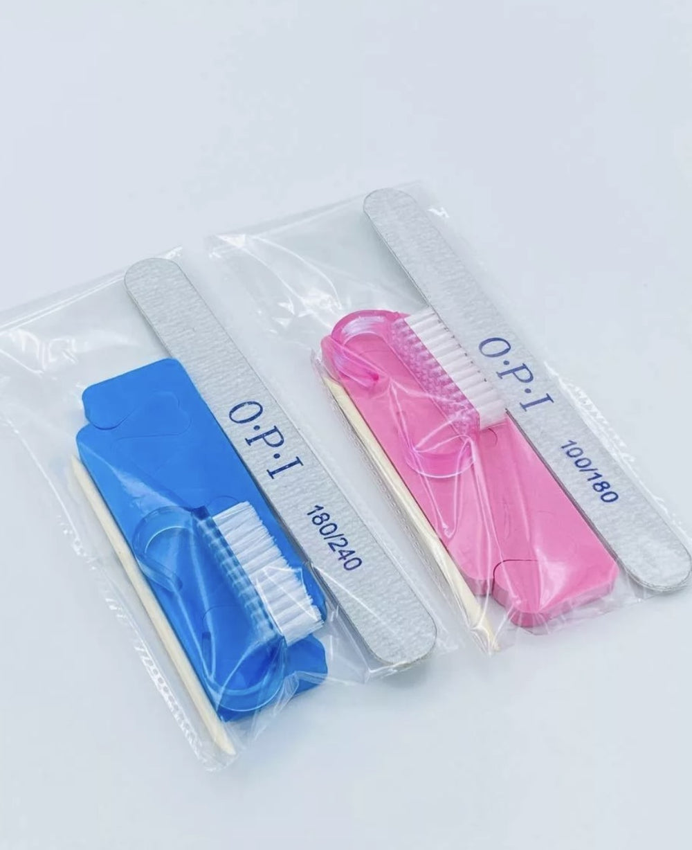 Σετ πεντικιούρ μίας χρήσης. Το σετ περιλαμβάνει μία λίμα 100/180 grit, ένα διαχωριστικό δαχτύλων, ένα βουρτσάκι και ένα ξύλινο pusher.